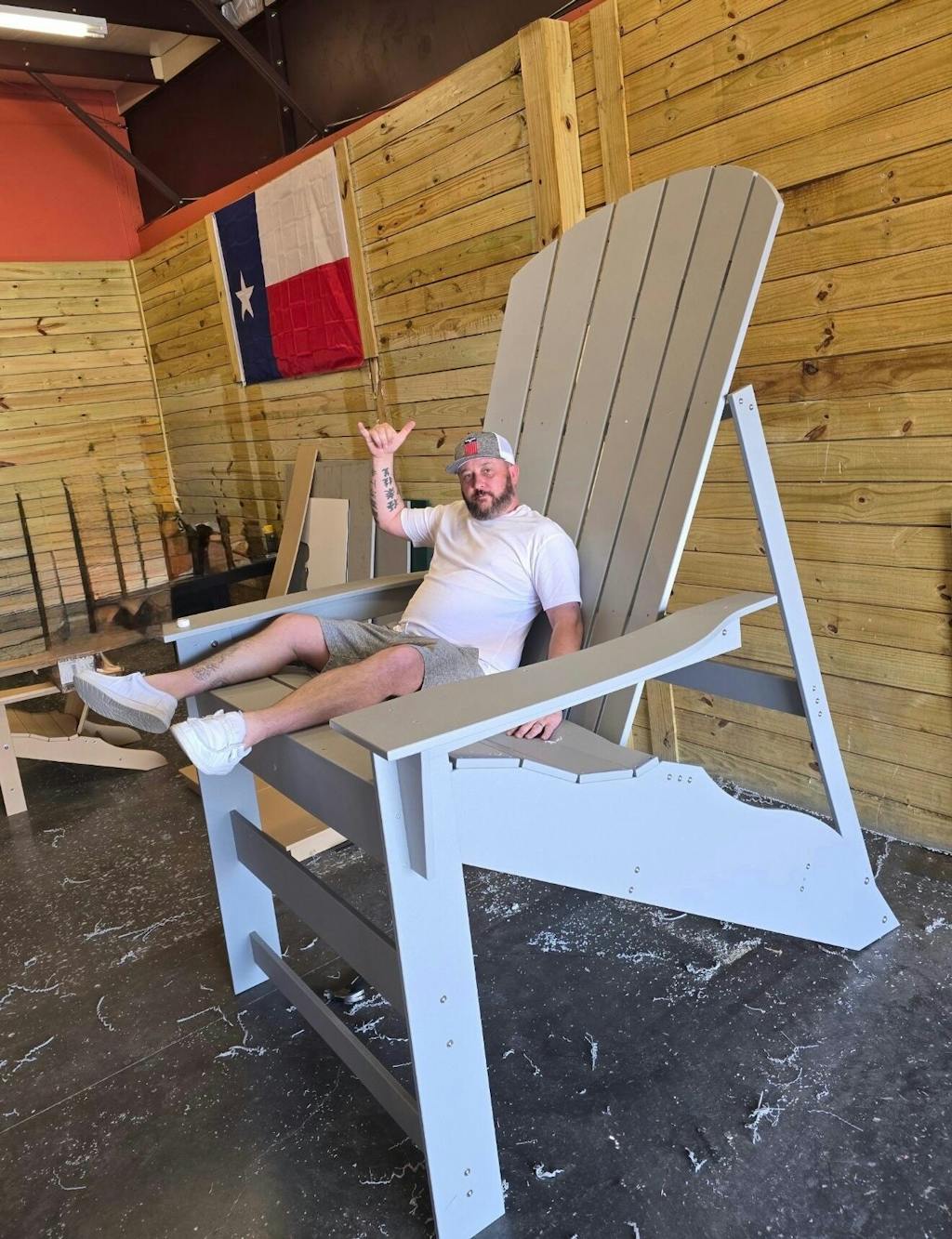 The Big Texan over-sized chair is made to turn heads. Standing 8 feet tall with a 5 foot seat width, the Big Texan will certainly draw attention while also creating a photo opp for people of all ages!